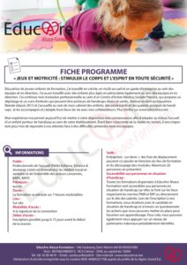 FICHE PROGRAMME JEUX ET MOTRICITÉ, STIMULER LE CORPS ET L’ESPRIT EN TOUTE SÉCURITÉ